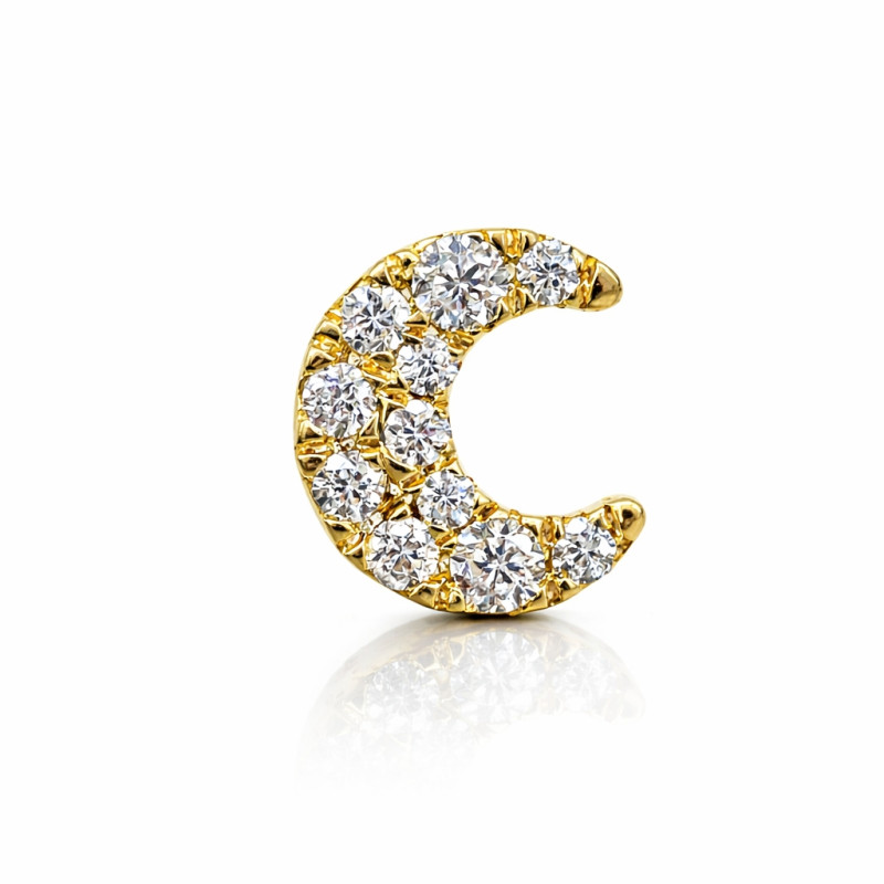 Perfect for earlobe, helix, tragus, and cartilage piercings, this delicate moon design offers a timeless sparkle that elevates any piercing style.