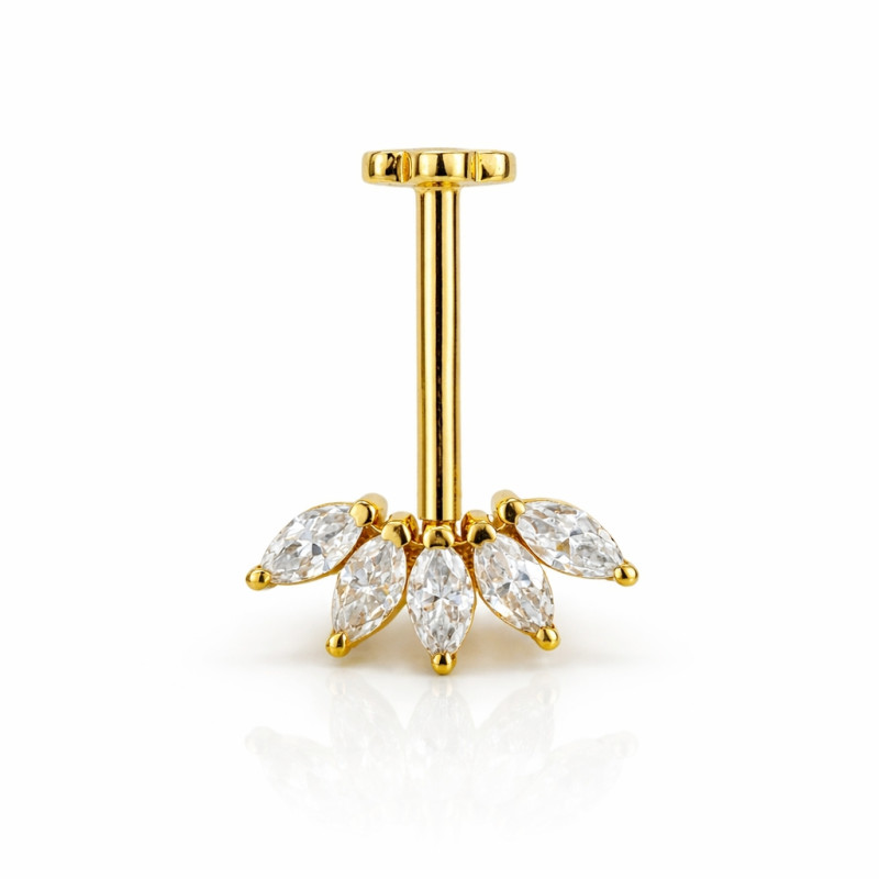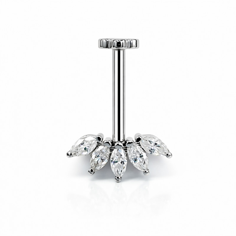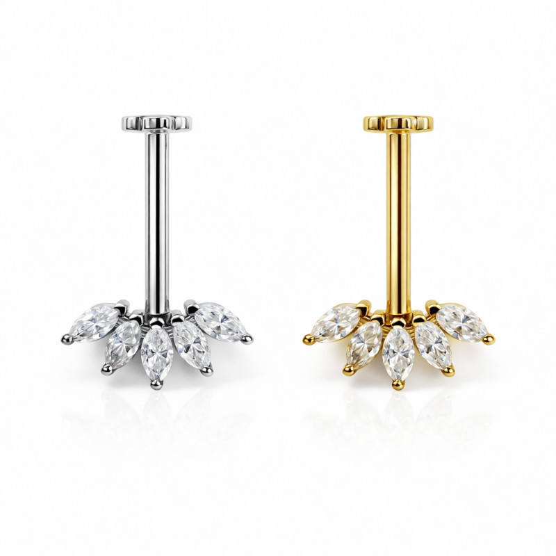 Engineered for professional piercing standards, this jewelry features an internally threaded labret system, ensuring a secure fit with smooth, irritation-free wear. The flat back sits comfortably against the skin, making it ideal for long-term wear in cartilage piercings.