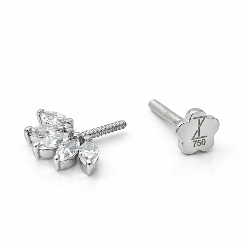 Designed specifically for vertical helix (bugadi) piercings, this elegant piece brings a perfect balance of structure, sparkle, and luxury. Crafted in solid 18K gold (750 hallmark), this stud features a graceful fan of marquise-cut moissanite stones that sit beautifully along the natural curve of the ear, creating a refined crown-like effect.