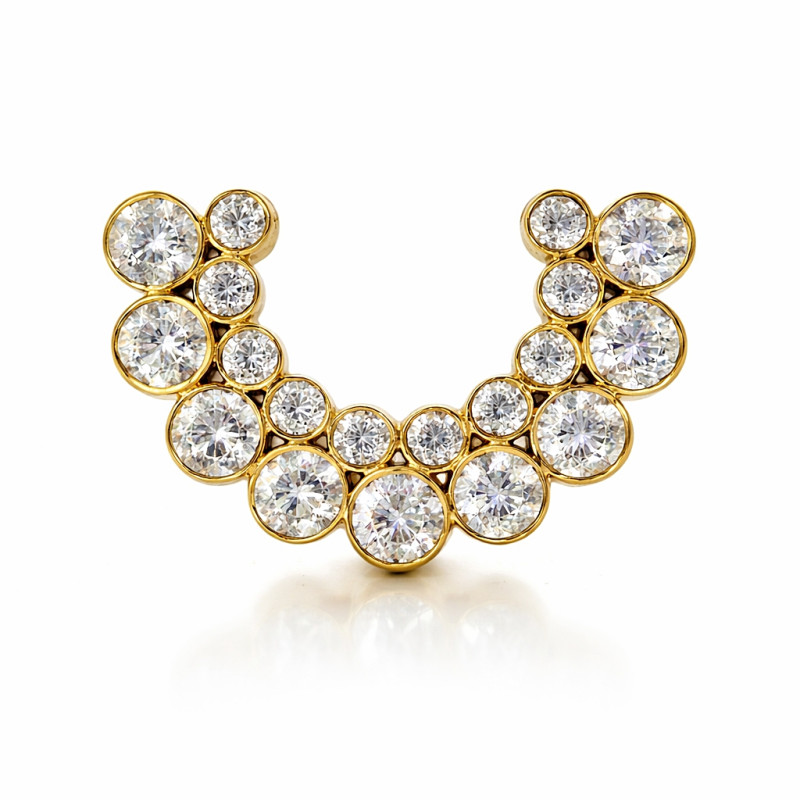 This design is especially suited for anatomies with sufficient surface area, where the curved cluster can sit flush and showcase its full brilliance.