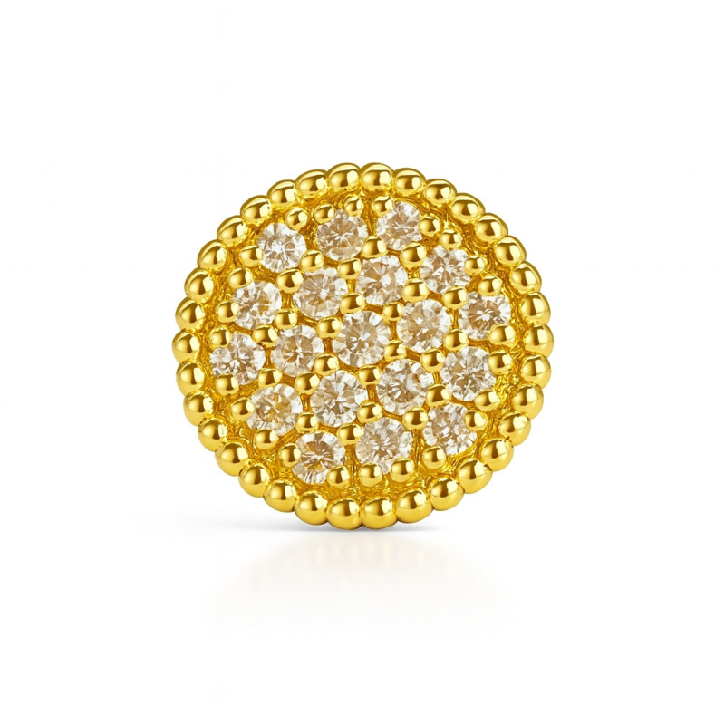 Timeless, radiant, and flawlessly crafted — this pavé diamond sun stud is made from solid 18K yellow gold and encrusted with a shimmering cluster of natural diamonds. Each stone is meticulously pavé-set to create a refined, full-sparkle surface that catches the light beautifully from every angle.