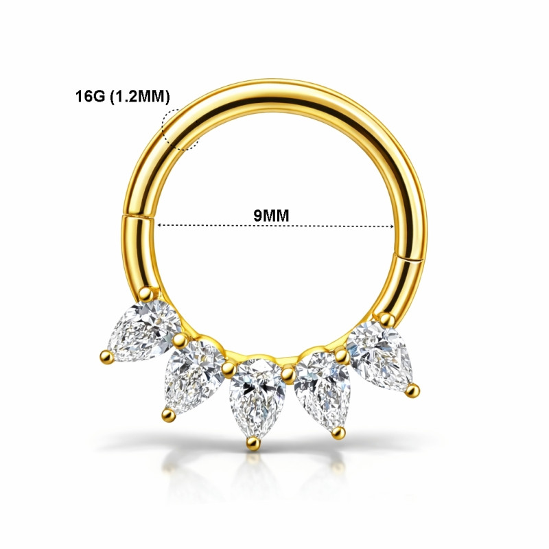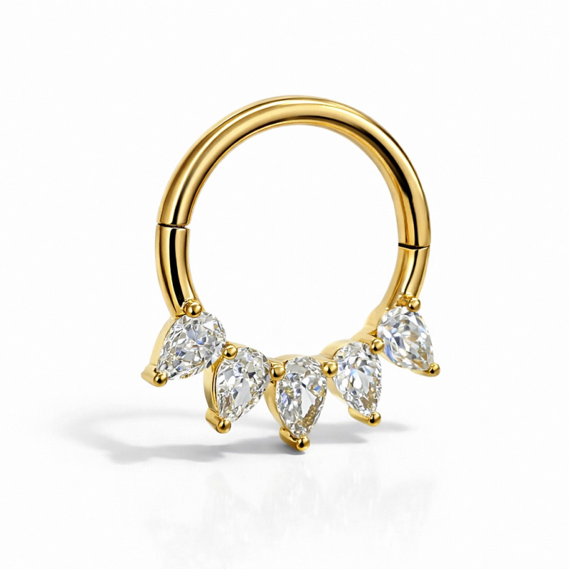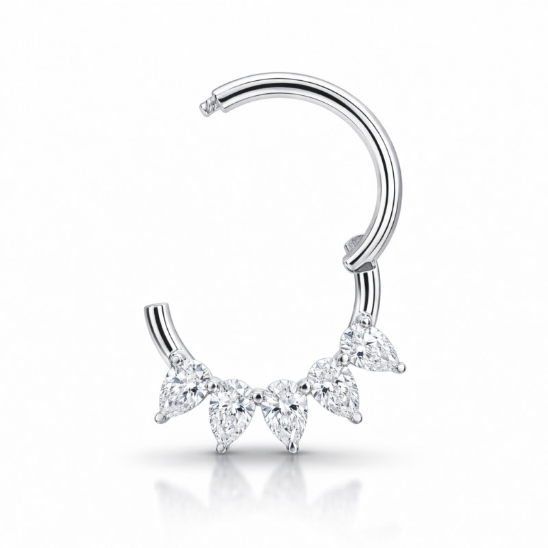 Elevate your piercing with timeless brilliance and refined luxury. This exquisite pear shape lab diamond clicker ring is crafted in solid 18K gold (750 hallmark) and adorned with a graceful row of pear-cut lab-grown diamonds, creating a soft crown-like silhouette that sparkles with every movement.