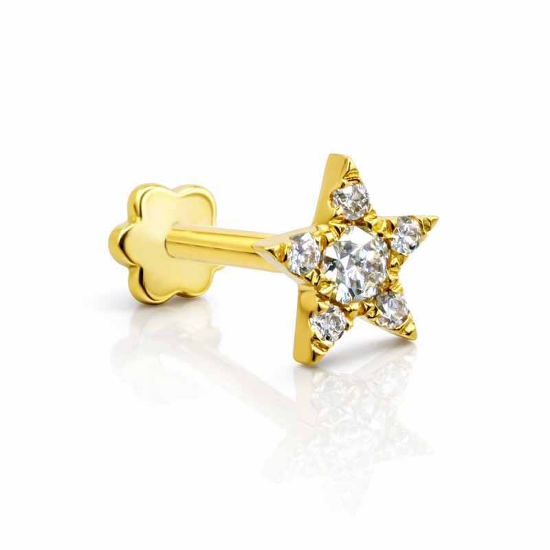 Add a touch of celestial sparkle to your piercing collection with this premium 18K Gold Star Moissanite Flat Back Stud. Designed for both elegance and everyday comfort, this luxurious star-shaped jewelry combines fine craftsmanship with safe piercing standards, making it perfect for fresh and healed ear piercings alike.