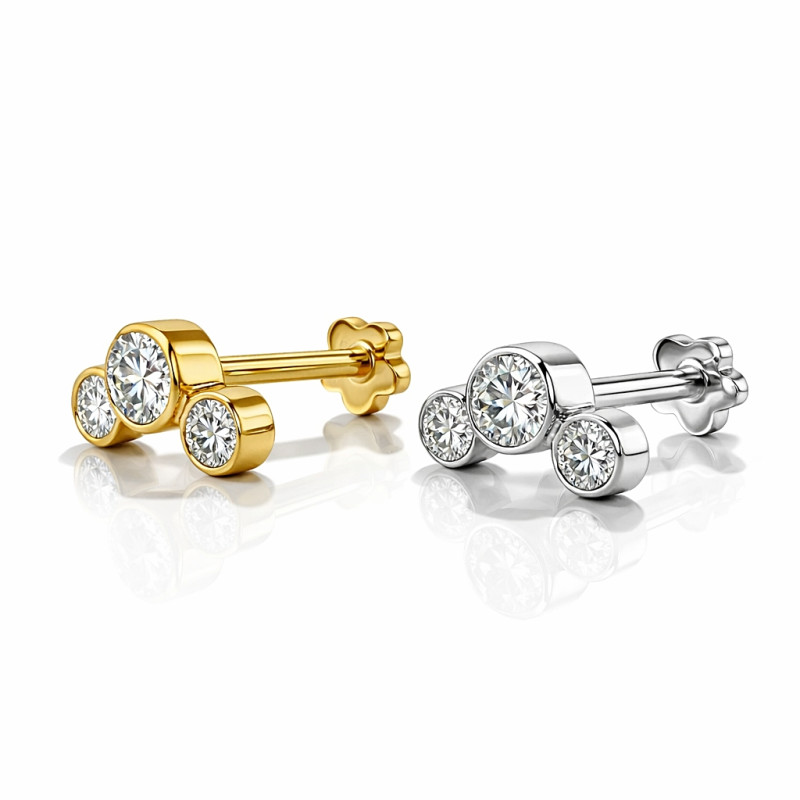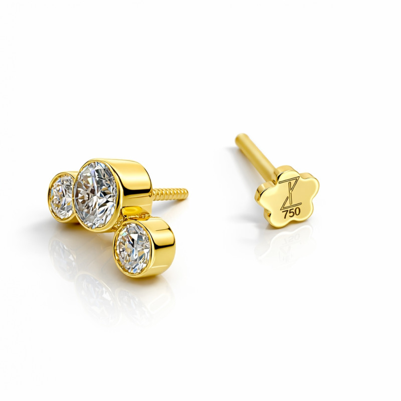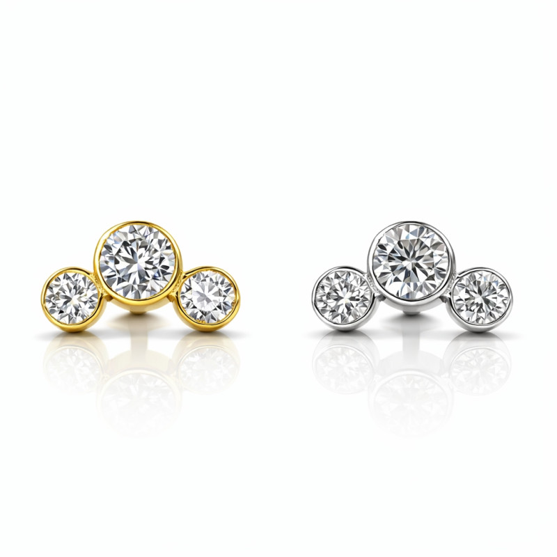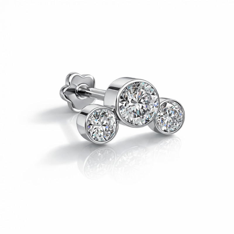Refined, radiant, and timeless — this Three Moissanite Flat Back Stud is crafted from premium 18K solid gold and designed for elegance, comfort, and everyday wear. Featuring a sophisticated three-stone arrangement, this exquisite piece adds brilliance to any curated ear or facial piercing.