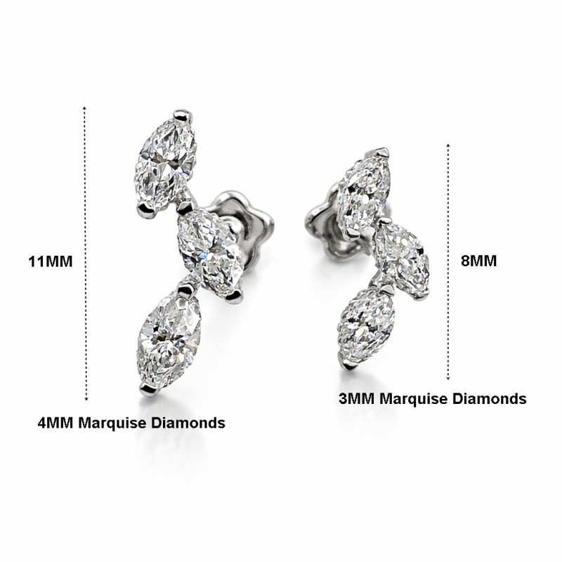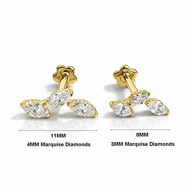 18K Gold Triple Marquise Diamond Stud (Sold Per Piece)