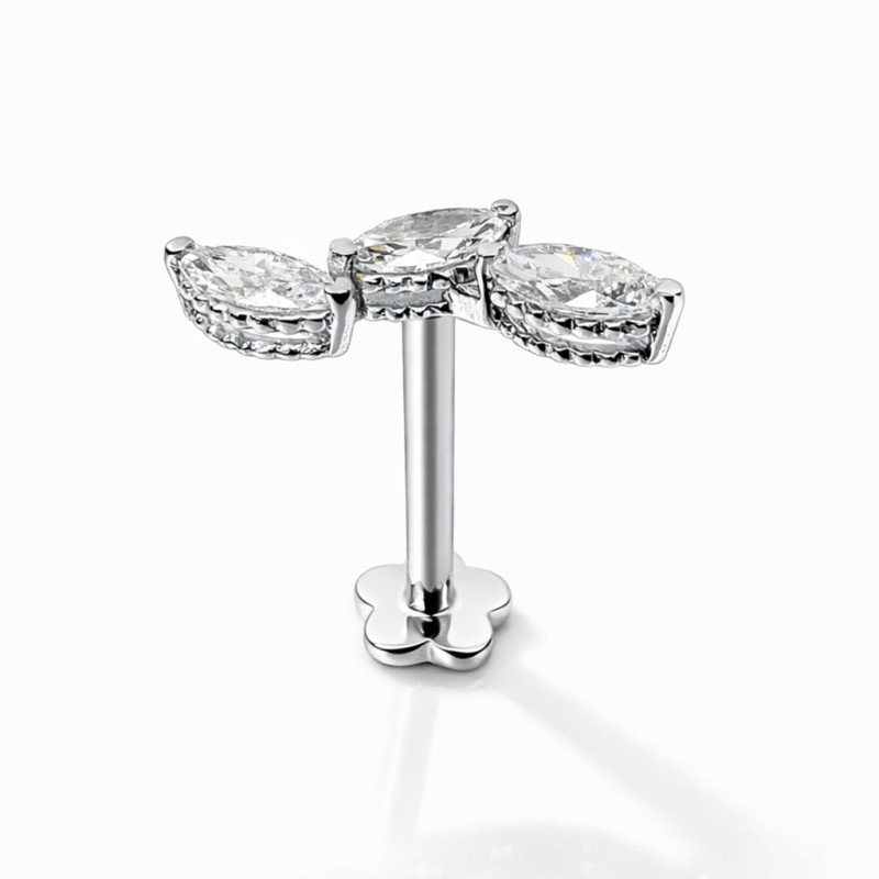 Elevate your piercing collection with this exquisite 18K solid gold triple marquise diamond stud, handcrafted for those who appreciate true fine jewelry in body piercing. Designed with three perfectly matched SI natural marquise-cut diamonds, this piece delivers exceptional brilliance, symmetry, and a refined luxury finish. Comes with certificate.