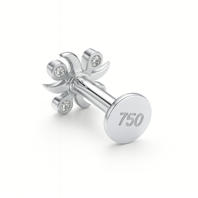 18K White Gold Diamond Cross-Petal Stud – Internally Threaded (Sold Per Piece)
