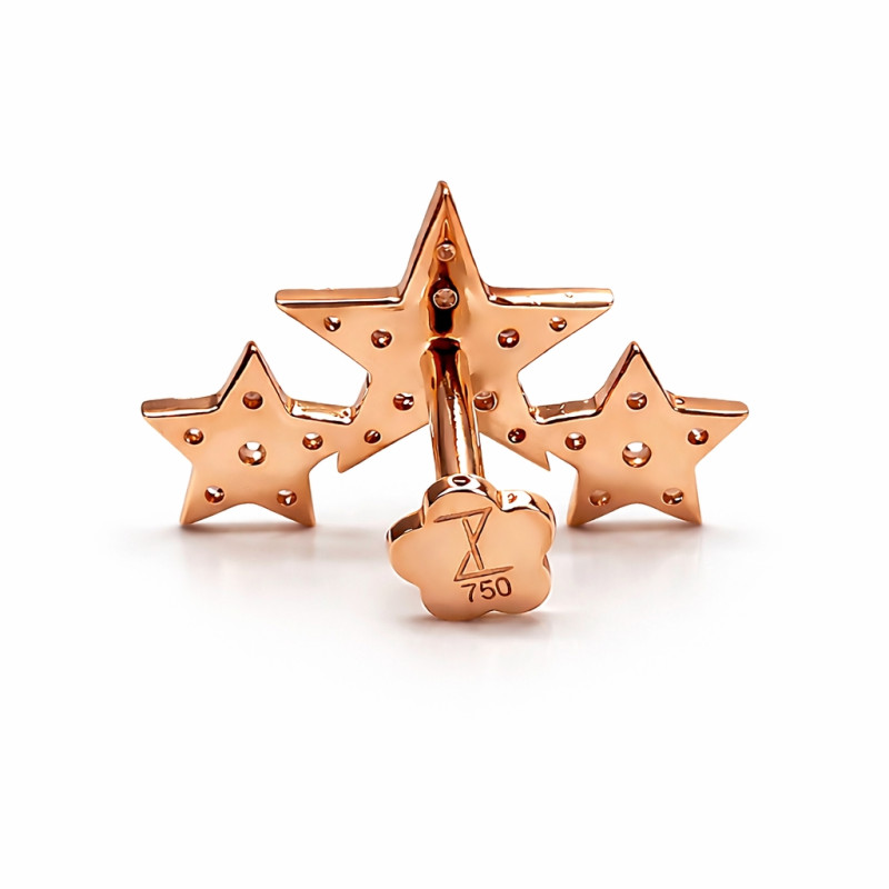 A perfect choice for clients who love romantic tones, celestial symbolism, and fine-jewelry craftsmanship, this rose gold triple star moissanite top offers timeless beauty with modern piercing comfort.