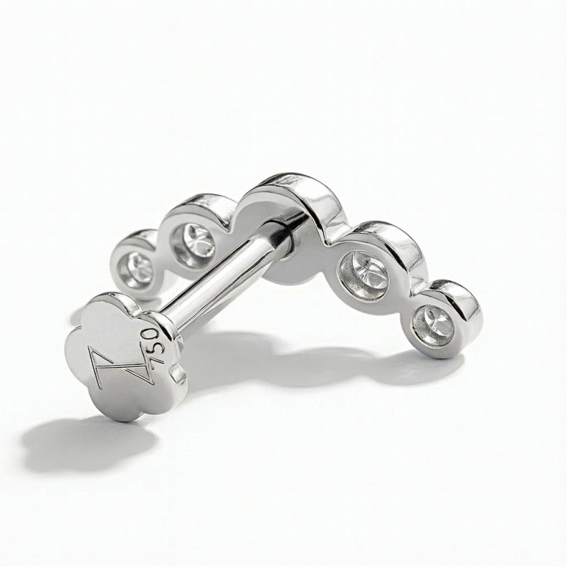 Sleek, modern, and brilliantly refined — this cascading stud is crafted from solid 18K white gold and set with premium round moissanite stones. Each stone is bezel-set for a clean, contemporary look that enhances clarity and fire, creating a radiant gradient effect from smallest to largest.