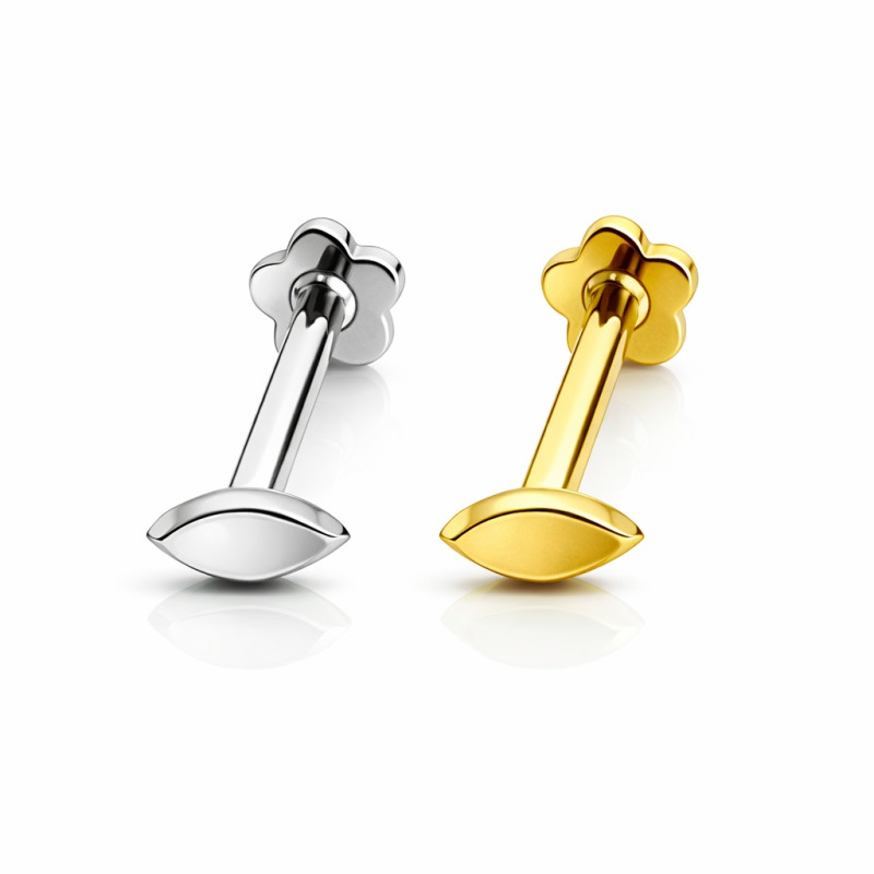 Elegant, minimal, and timeless — this marquise-shaped solid gold flat back stud is designed to bring refined sophistication to your piercing collection. Featuring a sleek marquise silhouette, this piece creates a delicate pointed shape that adds a subtle yet luxurious accent to any curated ear style.