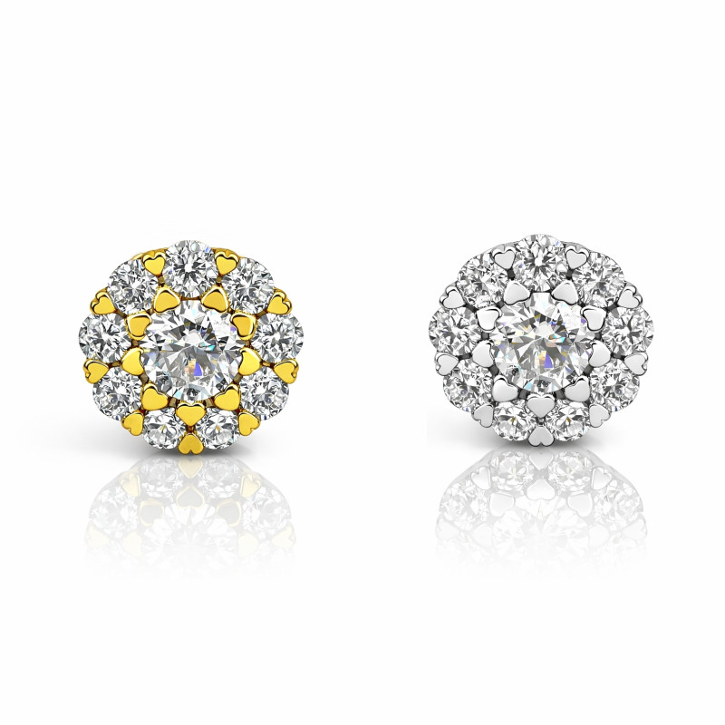 Cut: Precision round brilliant stones in a clustered illusion setting