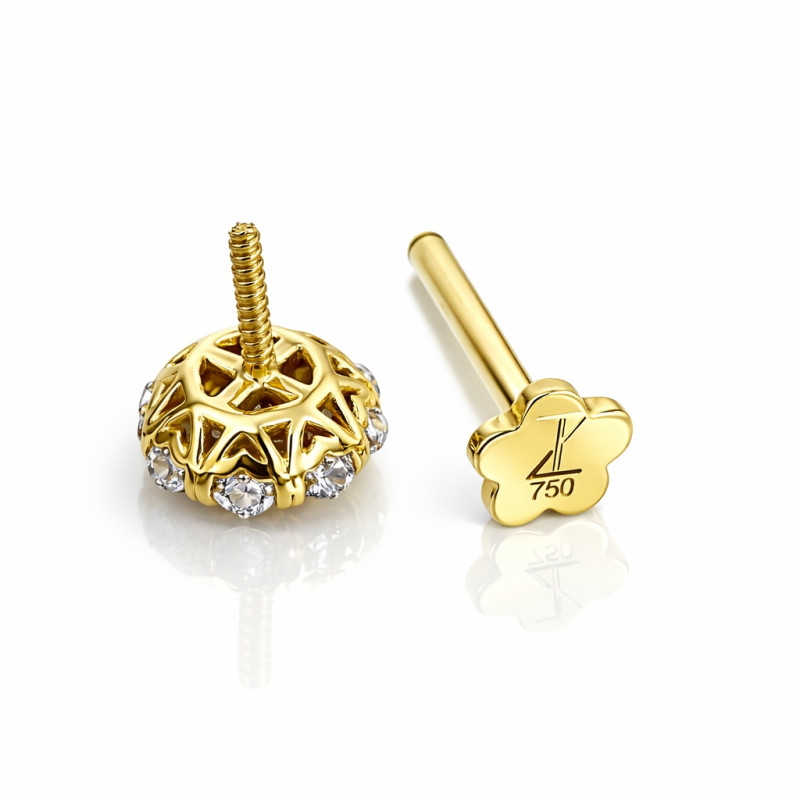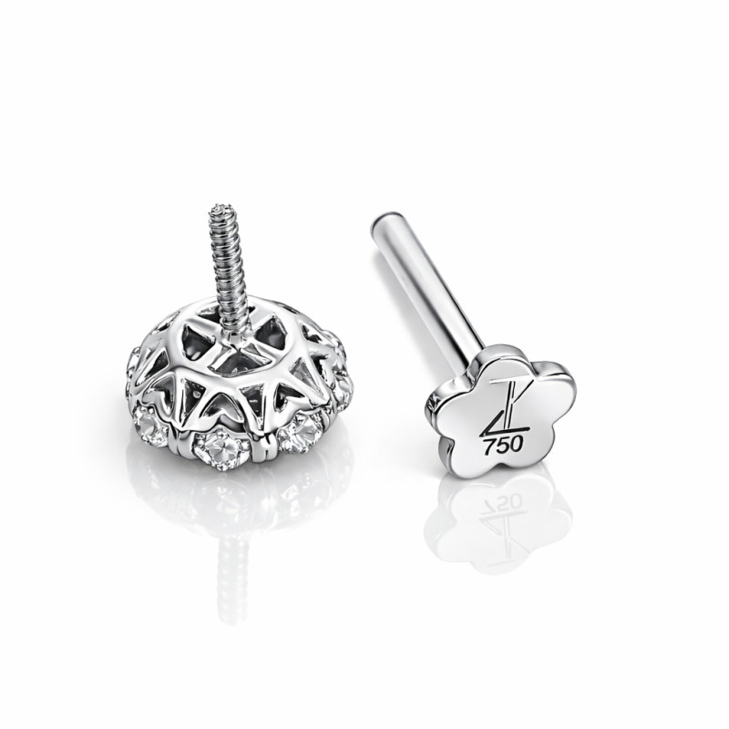 A signature luxury design from Piercing Zone, the Illusion Flower is engineered to create the visual impact of a large diamond cluster while maintaining a smooth, skin-friendly profile. The hidden heart-shaped prongs form a floral illusion that maximizes brilliance while keeping the jewelry comfortable for everyday wear.