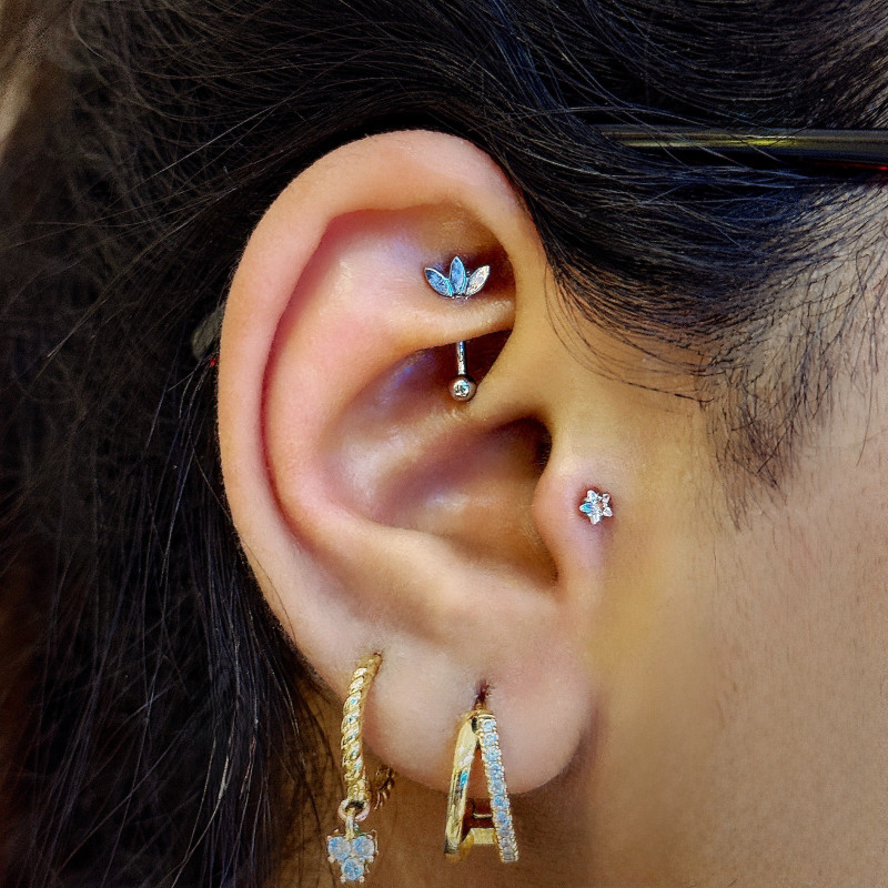 This jewelry is suitable for the following piercings: Rook, Eyebrow.