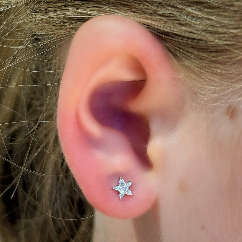 Add a touch of celestial sparkle to your piercing collection with this premium 18K Gold Star Moissanite Flat Back Stud. Designed for both elegance and everyday comfort, this luxurious star-shaped jewelry combines fine craftsmanship with safe piercing standards, making it perfect for fresh and healed ear piercings alike.