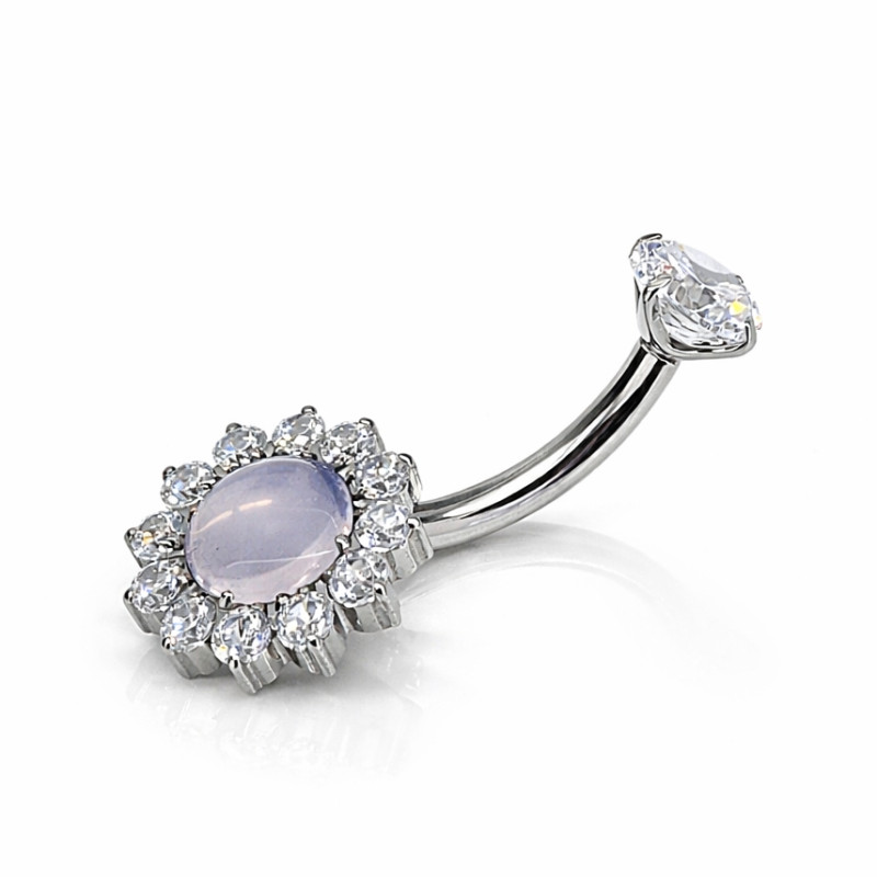 Elevate your navel piercing with this elegant internally threaded belly ring, crafted from implant-grade titanium and designed for both beauty and comfort. Featuring a soft-glow moonstone center surrounded by a radiant halo of high-clarity cubic zirconia, this piece offers a perfect balance of luxury, durability, and skin safety.