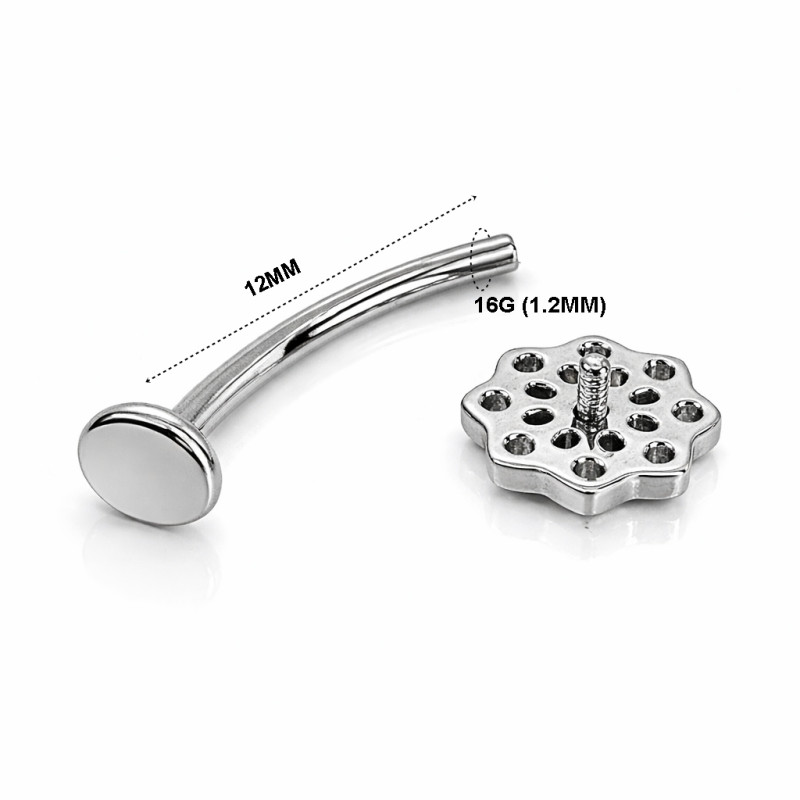 Crafted from implant-grade titanium, this floating belly piercing features a delicate floral design top with a smooth flat-back disc, making it ideal for modern floating navel anatomy.