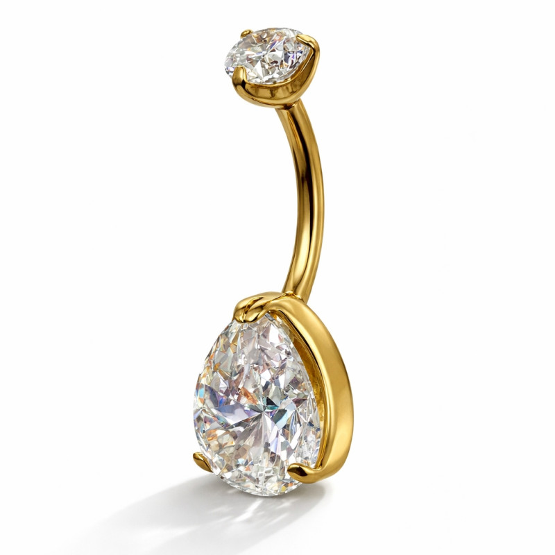 This elegant teardrop belly piercing is crafted from implant-grade ASTM F-136 titanium, making it lightweight, durable, and safe for sensitive skin. The design features a sparkling teardrop-shaped stone that adds a refined, elegant look while sitting comfortably on the body.