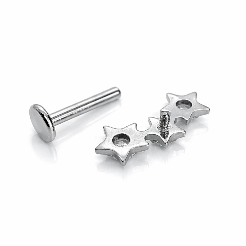 Add celestial elegance to your ear curation with this stunning Implant-Grade Titanium Triple Star Flat Back Stud. Designed with a radiant trio of star-shaped settings, each adorned with sparkling stones, this exquisite piece delivers a perfect blend of sophistication and modern style. Its graceful curved design enhances the natural contour of the ear, making it an ideal choice for curated piercings.